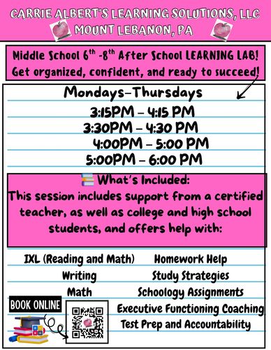 To make the most of study hour, students are encouraged to support one another in both individual and group settings. A teacher will be available throughout the session to offer guidance, answer questions, and help facilitate these strategies: