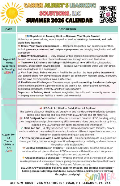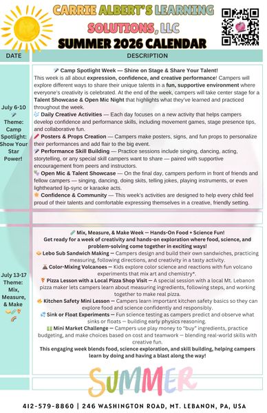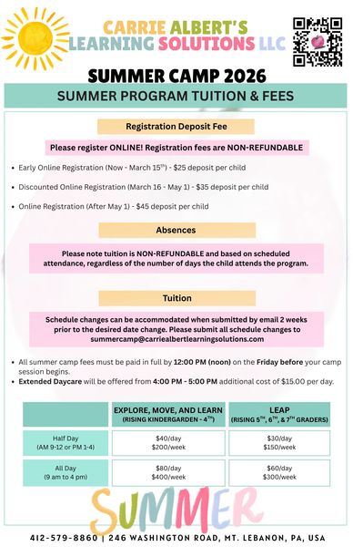 SUMMER CAMP INFORMATION & REGISTRATION- CLICK HERE!